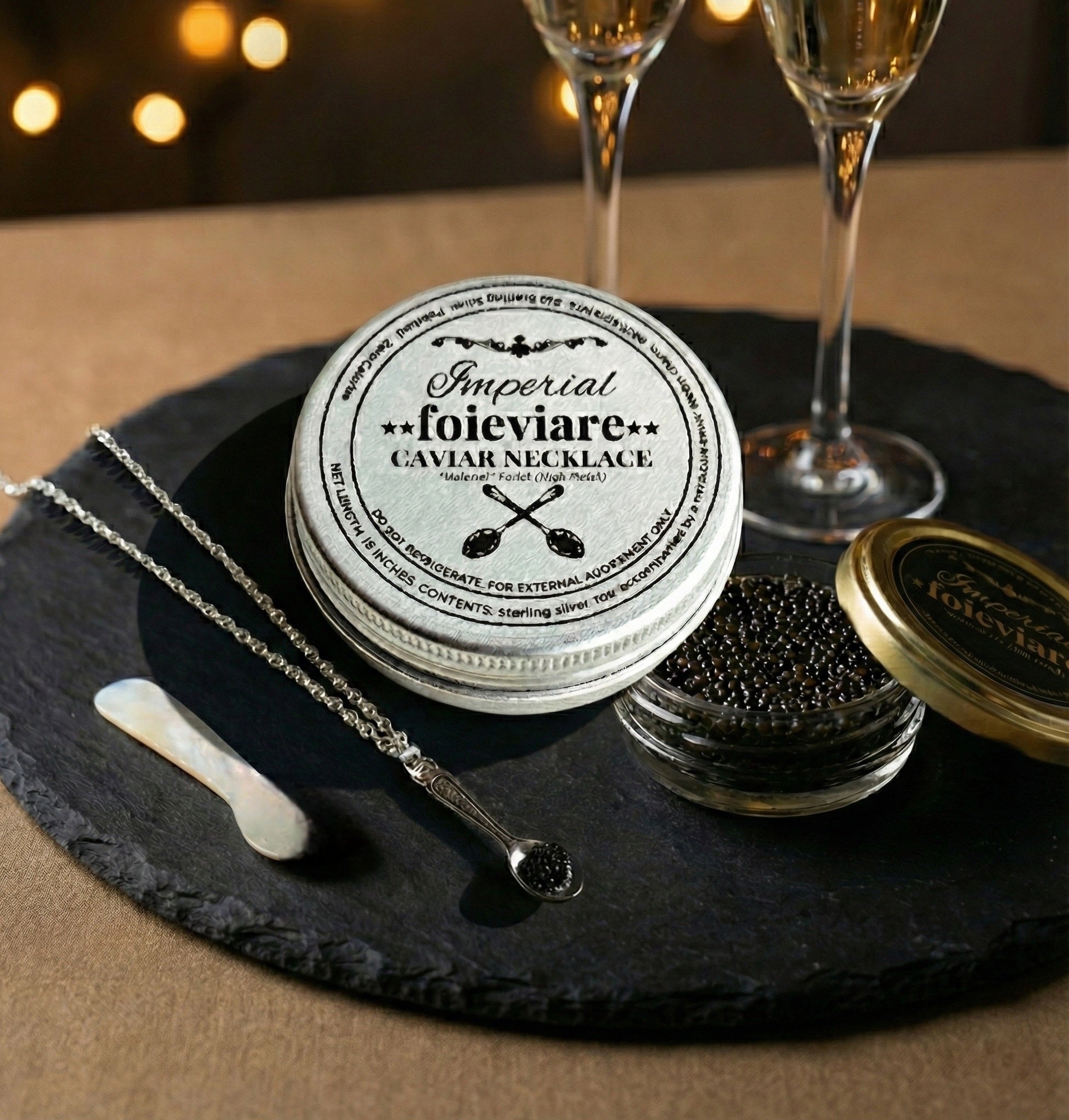 Caviar Pearl Necklace is the ultimate statement piece for the luxury food lover.